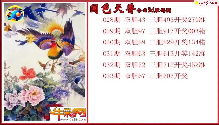 > 26年033期3d 国色天香今日胆码图
